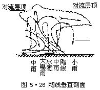 飑线是带状雷暴群所构成的风向、风速突变的狭窄的强对流天气带。飑线过境时,风向突变、风速急增、气压骤升、气温剧降,同时伴有雷暴、暴雨,甚至冰雹、龙卷等天气现象。因而飑线是一种很具破坏力的严重灾害性天气。 飑线的水平范围很小,长度由几十千米到几百千米,一般为150—300km。宽度从半千米到几千米,最宽几十千米。垂直范围只有3km左右。维持时间多为4—10h,短的只有几十分钟(图5•26)。 飑线同积雨云集合体相伴出现,是在气团内有深厚不稳定层,低层有丰富水汽,以及有引起不稳定能量释放的触发机制的条件下产生的,大多发生在暖湿的热带气团内。同时还同一定的天气形势相关,例如高空槽后、冷锋前常有飑线出现。雷暴高压前缘下沉的强冷空气与其前方暖湿气流间的强辐合带上也可形成飑线。